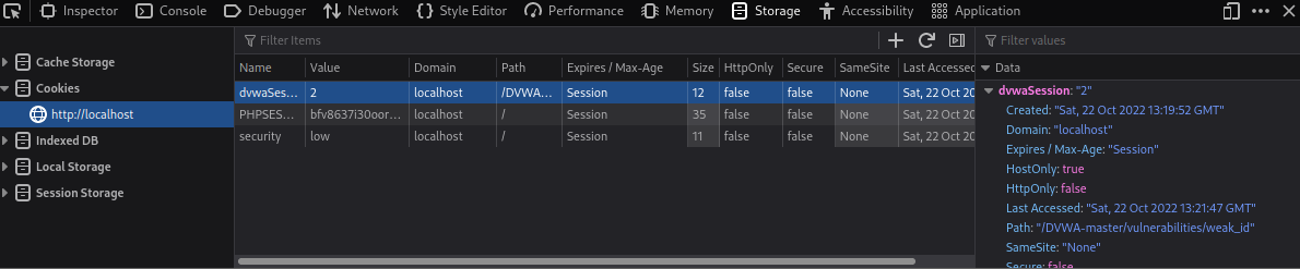 결과를 보아 쿠키를 생성할 때마다 값이 1씩 증가하는 것을 알 수 있는데 세션ID를 너무 쉽게 추측할 수 있다. 이것을 악용한다면 공격자가 다른 사용자의 세션ID를 사용하여 정보를 훔치는 등을 할 수 있다.