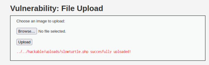 이미지가 아닌 파일을 업로드하면 위와 같이 빨간 문구가 뜬다. low때 만들어 놨던 slowturtle.php파일을 이용해보겠다.
