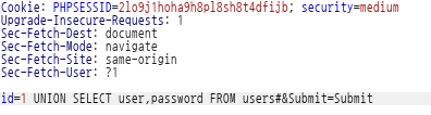 PHPSESSID가 2lo9j1hoha9h8pl8sh8t4dfijb로 변경되었다. 즉 쿠키값만 변경된 것이다.