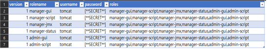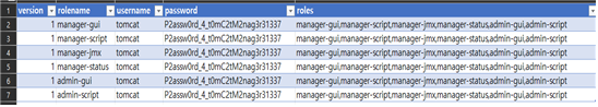 접속에 성공했고 tomcat-users1.xml로 다운받아 엑셀로 열어봤더니