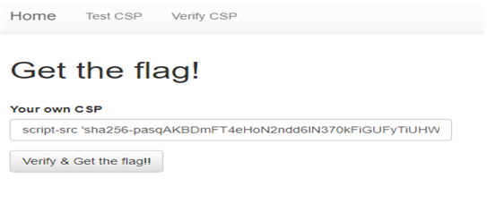 어떤 함수의 SHA값을 하나 알 수 있었다. test에서 초기에 script-src ‘unsafe-inline’이 적혀있는데 CSP를 공부했을 때 script-src는 스크립트 관련된 권한 집합을 제어하는 것으로 알고 있었다. 그리고 unsafe-inline은 inline script를 허용한다는 뜻이다. 그렇다면 script-src를 보내보았다.